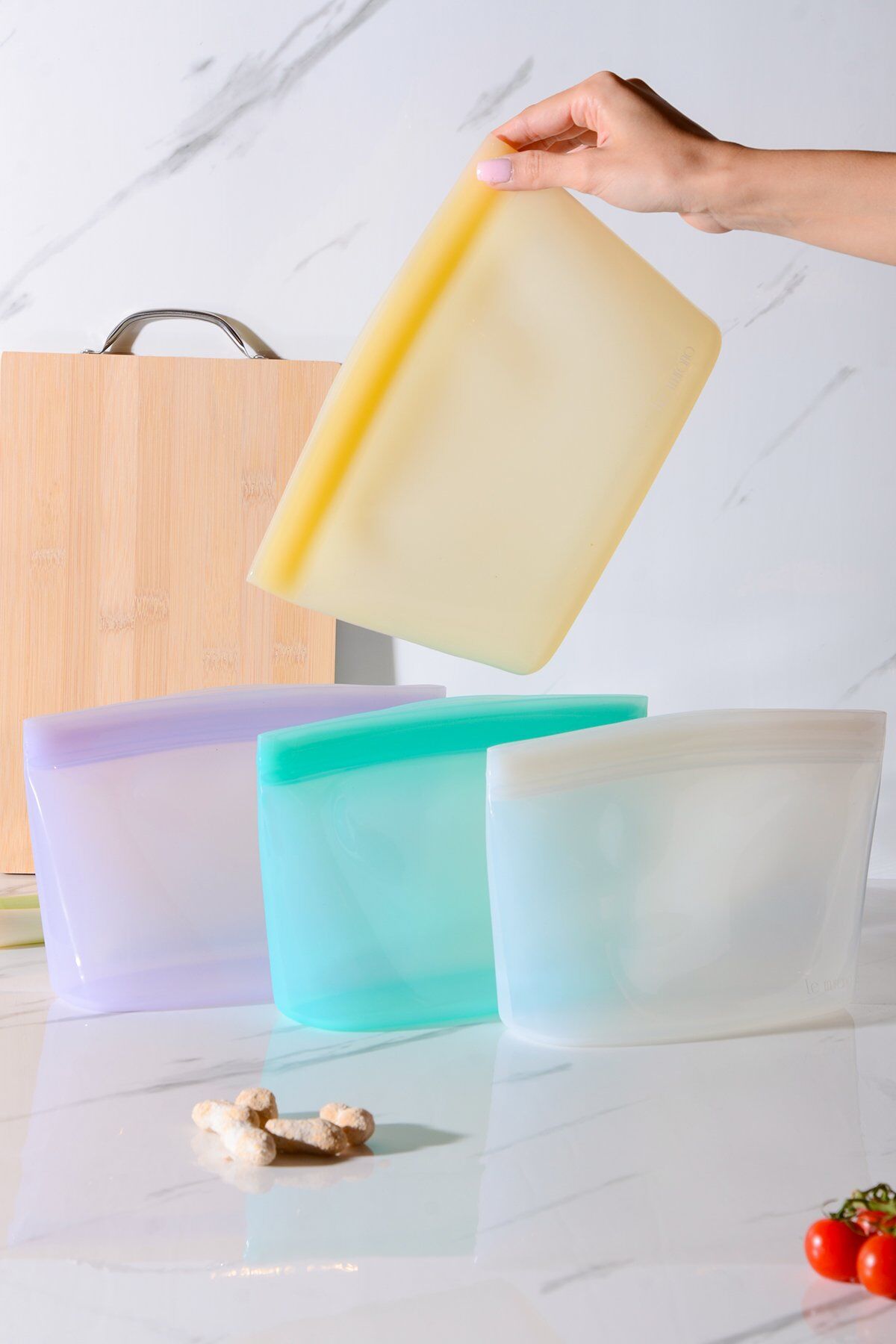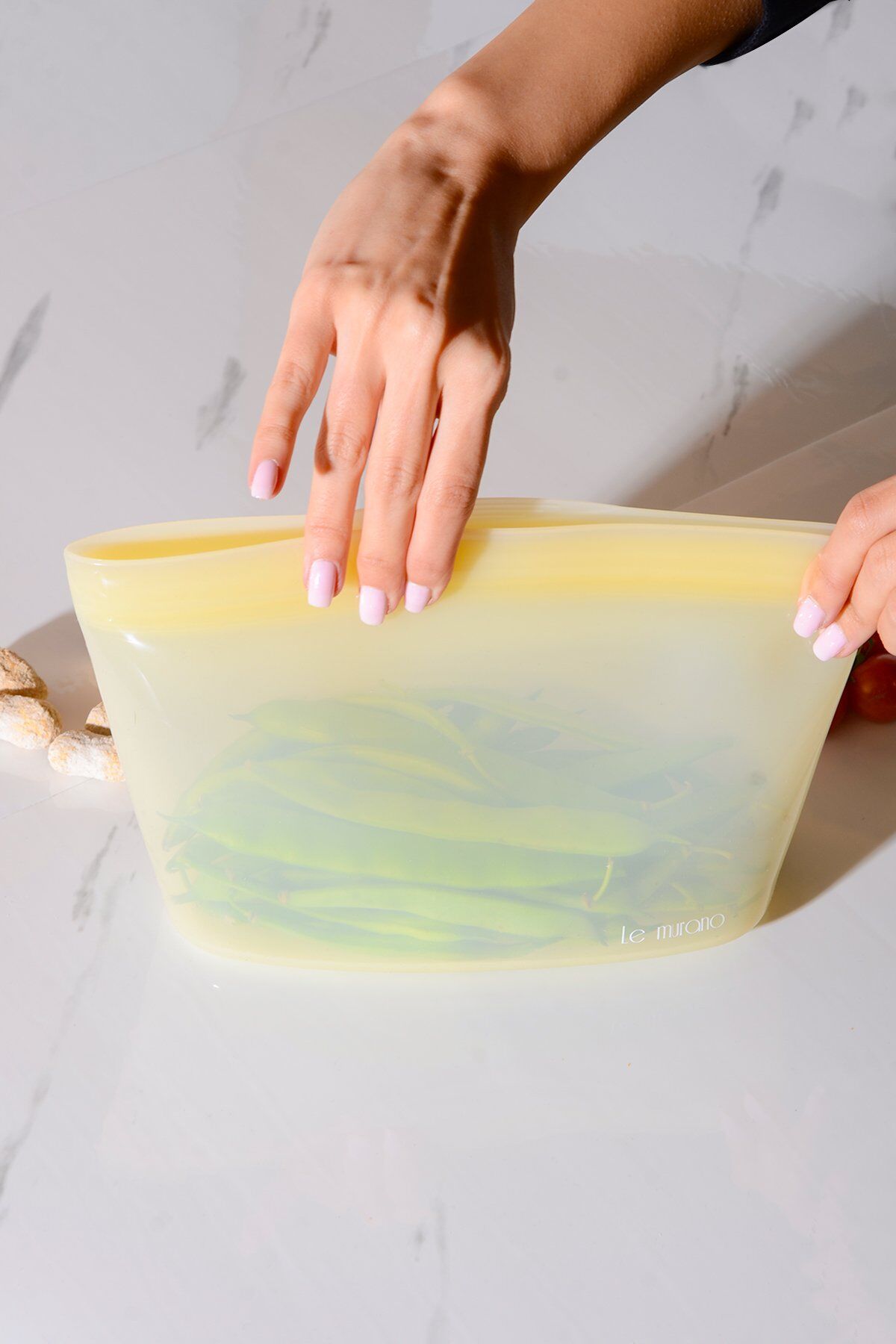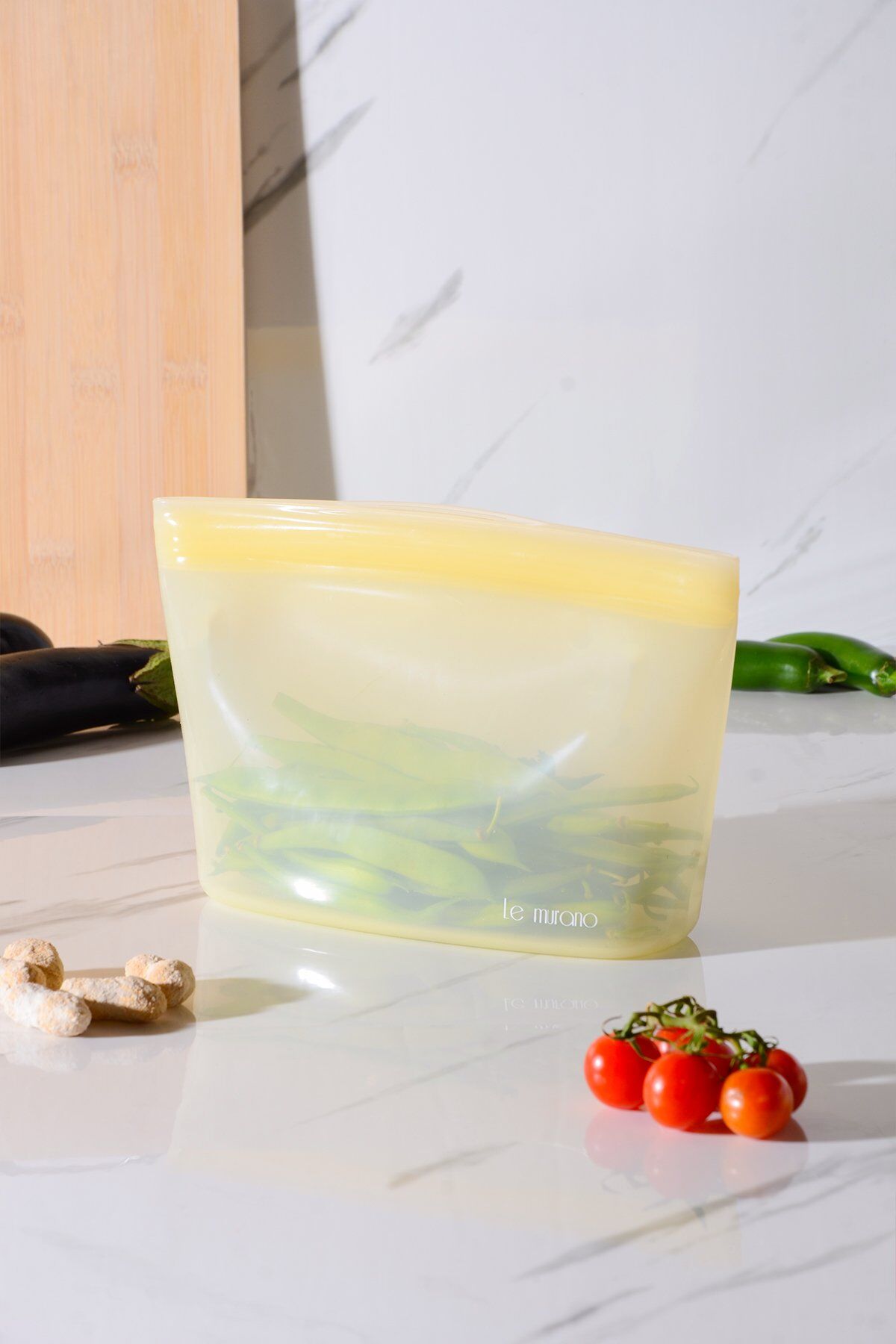 Lush Hava Sızdırmaz Kilitli Silikon Saklama Torbası 1500 ml; hava sızdırmaz kilitli ağzı sayesinde sızıntıyı önler. Dik durabilen geniş taban, dolap ve buzdolabında düzen sağlar. Atıştırmalık, sebze‑meyve, sous‑vide/marine ve seyahat eşyaları için uygundur. Dondurucu ve bulaşık makinesi uyumlu. Kozmetik/kişisel bakım için: ruj, maskara, fırça, mini parfüm ve seyahat boyu şişeleri düzenli ve sızıntısız taşımak için de uygundur.