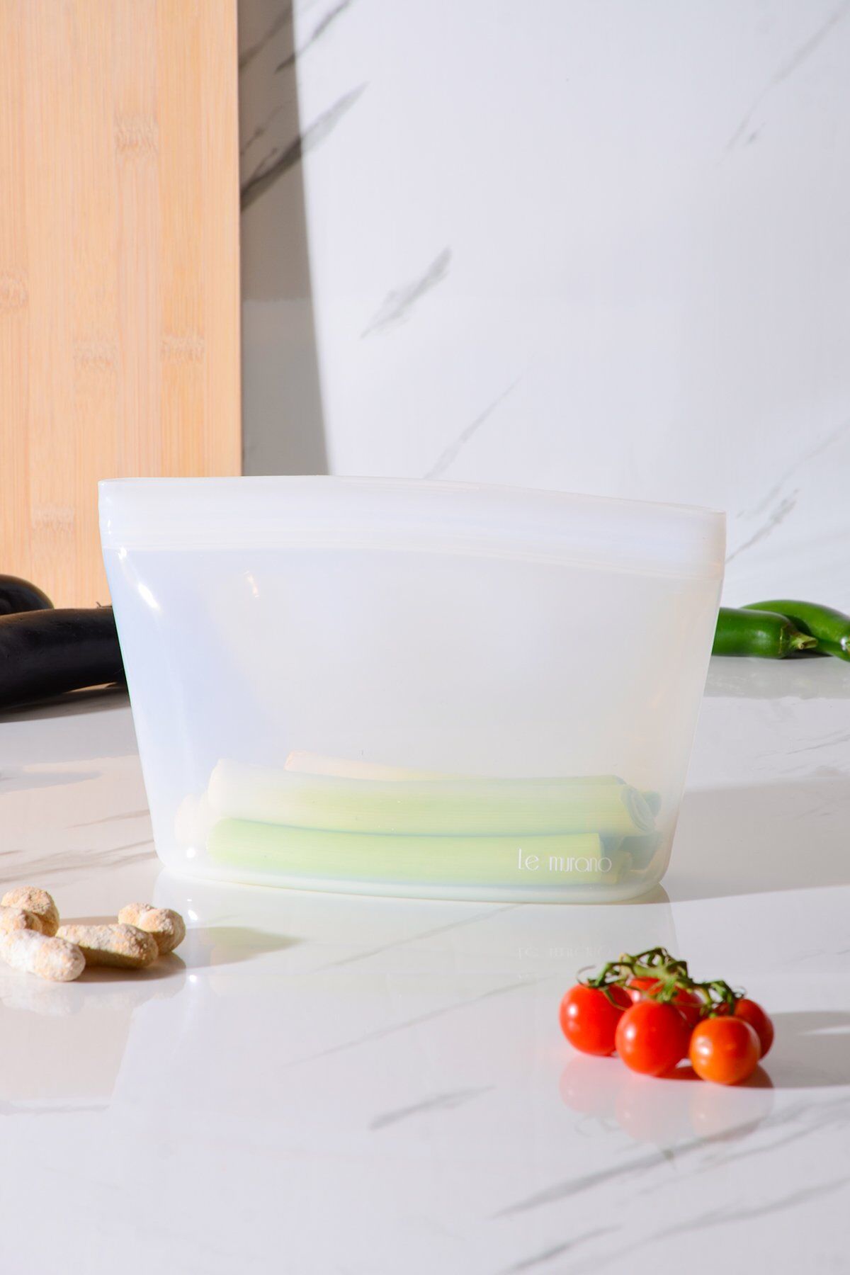 Lush Hava Sızdırmaz Kilitli Silikon Saklama Torbası 1500 ml; hava sızdırmaz kilitli ağzı sayesinde sızıntıyı önler. Dik durabilen geniş taban, dolap ve buzdolabında düzen sağlar. Atıştırmalık, sebze‑meyve, sous‑vide/marine ve seyahat eşyaları için uygundur. Dondurucu ve bulaşık makinesi uyumlu. Kozmetik/kişisel bakım için: ruj, maskara, fırça, mini parfüm ve seyahat boyu şişeleri düzenli ve sızıntısız taşımak için de uygundur.