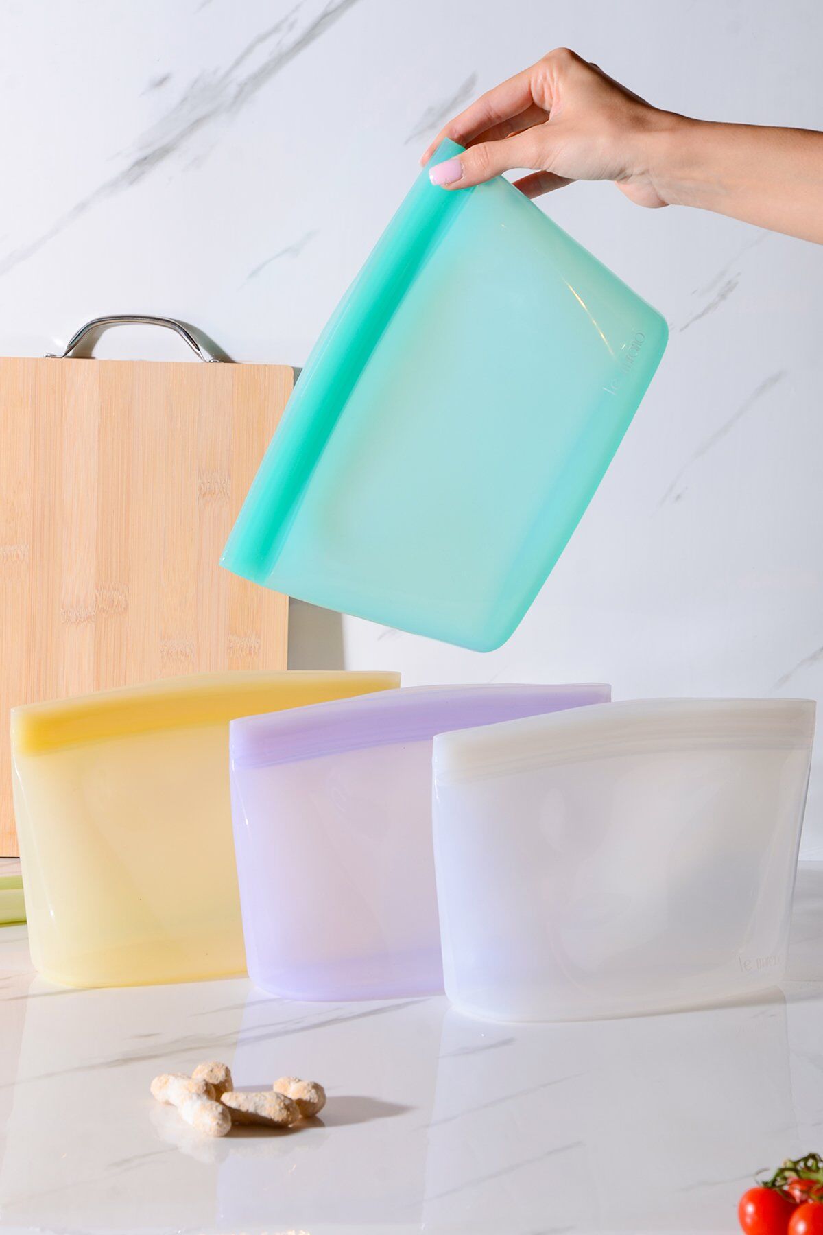 Lush Hava Sızdırmaz Kilitli Silikon Saklama Torbası 1500 ml; hava sızdırmaz kilitli ağzı sayesinde sızıntıyı önler. Dik durabilen geniş taban, dolap ve buzdolabında düzen sağlar. Atıştırmalık, sebze‑meyve, sous‑vide/marine ve seyahat eşyaları için uygundur. Dondurucu ve bulaşık makinesi uyumlu. Kozmetik/kişisel bakım için: ruj, maskara, fırça, mini parfüm ve seyahat boyu şişeleri düzenli ve sızıntısız taşımak için de uygundur.