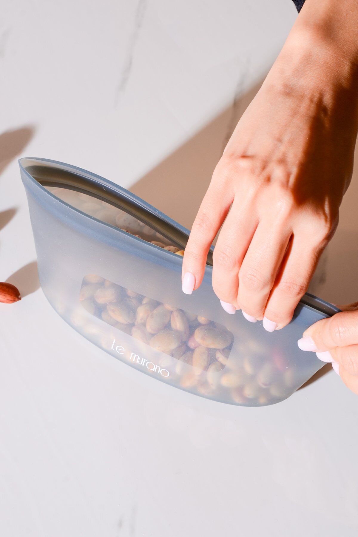 Mood Hava Sızdırmaz Kilitli Silikon Saklama Torbası 450 ml; hava sızdırmaz kilitli ağzı sayesinde sızıntıyı önler. Dik durabilen geniş taban, dolap ve buzdolabında düzen sağlar. Atıştırmalık, sebze‑meyve, sous‑vide/marine ve seyahat eşyaları için uygundur. Dondurucu ve bulaşık makinesi uyumlu. Kozmetik/kişisel bakım için: ruj, mini parfüm ve seyahat boyu şişeleri düzenli ve sızıntısız taşımak için de uygundur.