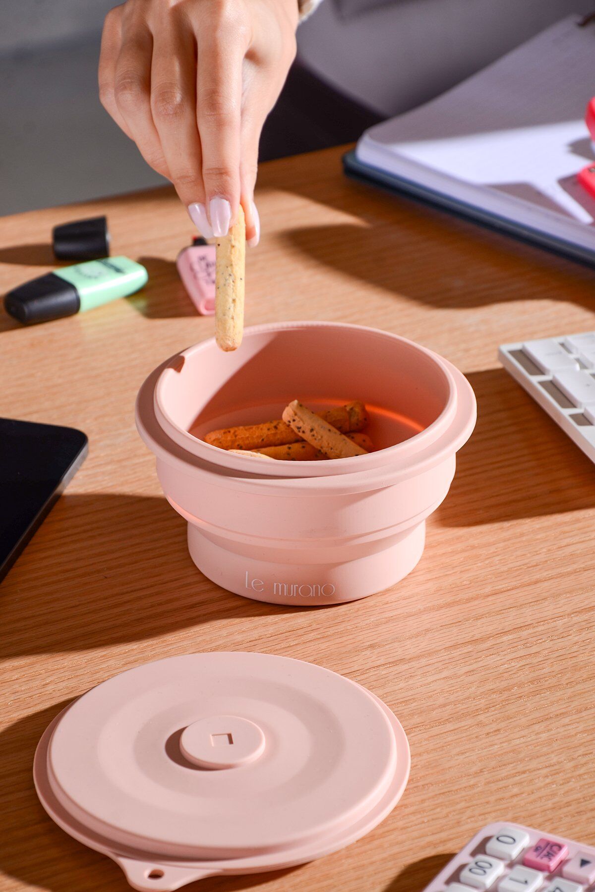 Mori Yuvarlak Katlanabilir Silikon Saklama Kabı 400 ml: sızdırmaz kapaklı, tekrar kullanılabilir ve kokusuz silikon yapıda. Artan yemek, öğle yemeği, bebek maması ve soslar için ideal. Mikrodalga ve dondurucu uyumlu, bulaşık makinesinde yıkanabilir. Kapaktaki hava tahliye ventili, mikrodalgada güvenli ısıtmaya yardımcı olur. Katlanabilir gövde dolapta yer tasarrufu sağlar.