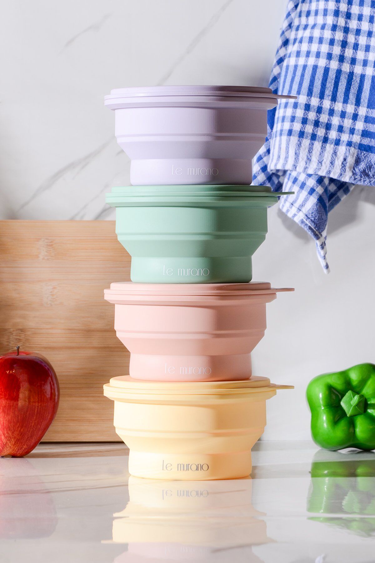 Mori Yuvarlak Katlanabilir Silikon Saklama Kabı 400 ml: sızdırmaz kapaklı, tekrar kullanılabilir ve kokusuz silikon yapıda. Artan yemek, öğle yemeği, bebek maması ve soslar için ideal. Mikrodalga ve dondurucu uyumlu, bulaşık makinesinde yıkanabilir. Kapaktaki hava tahliye ventili, mikrodalgada güvenli ısıtmaya yardımcı olur. Katlanabilir gövde dolapta yer tasarrufu sağlar.