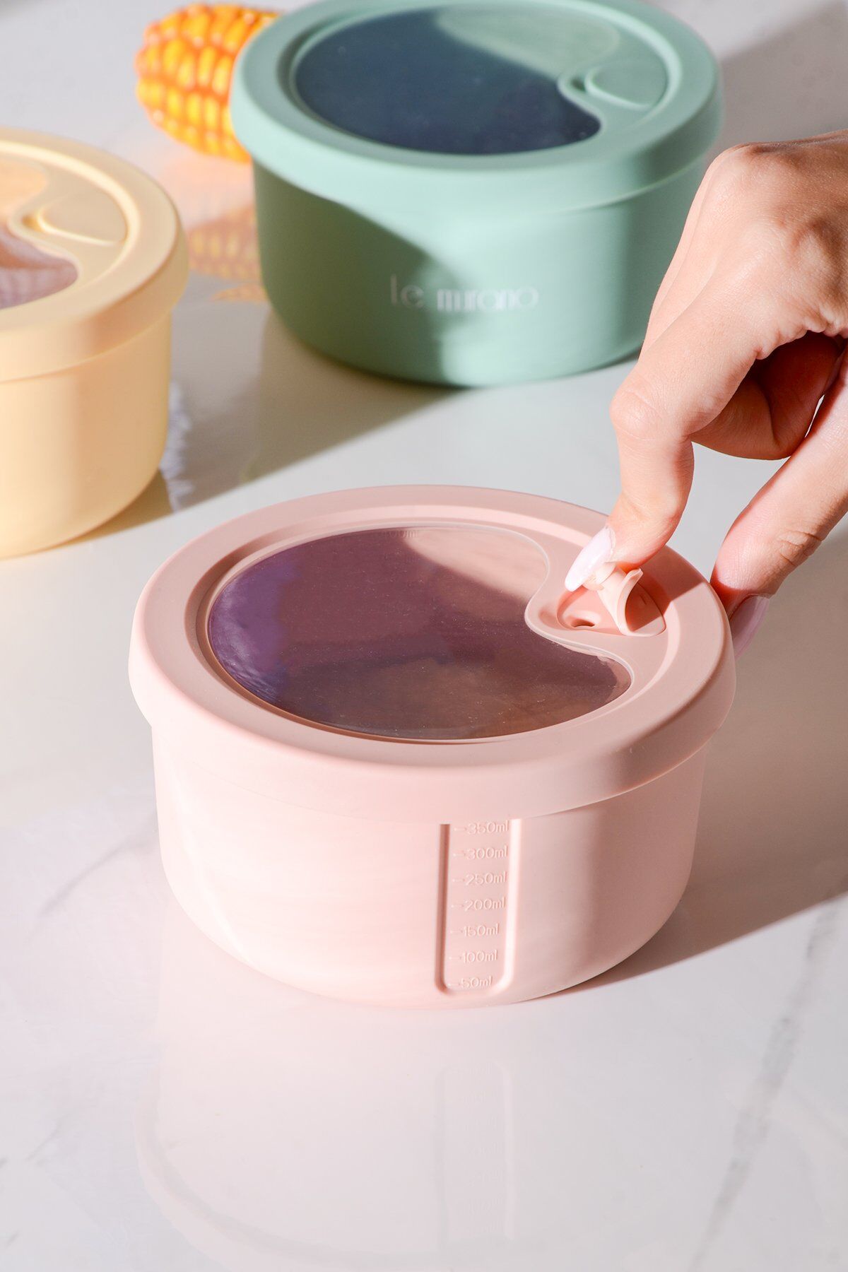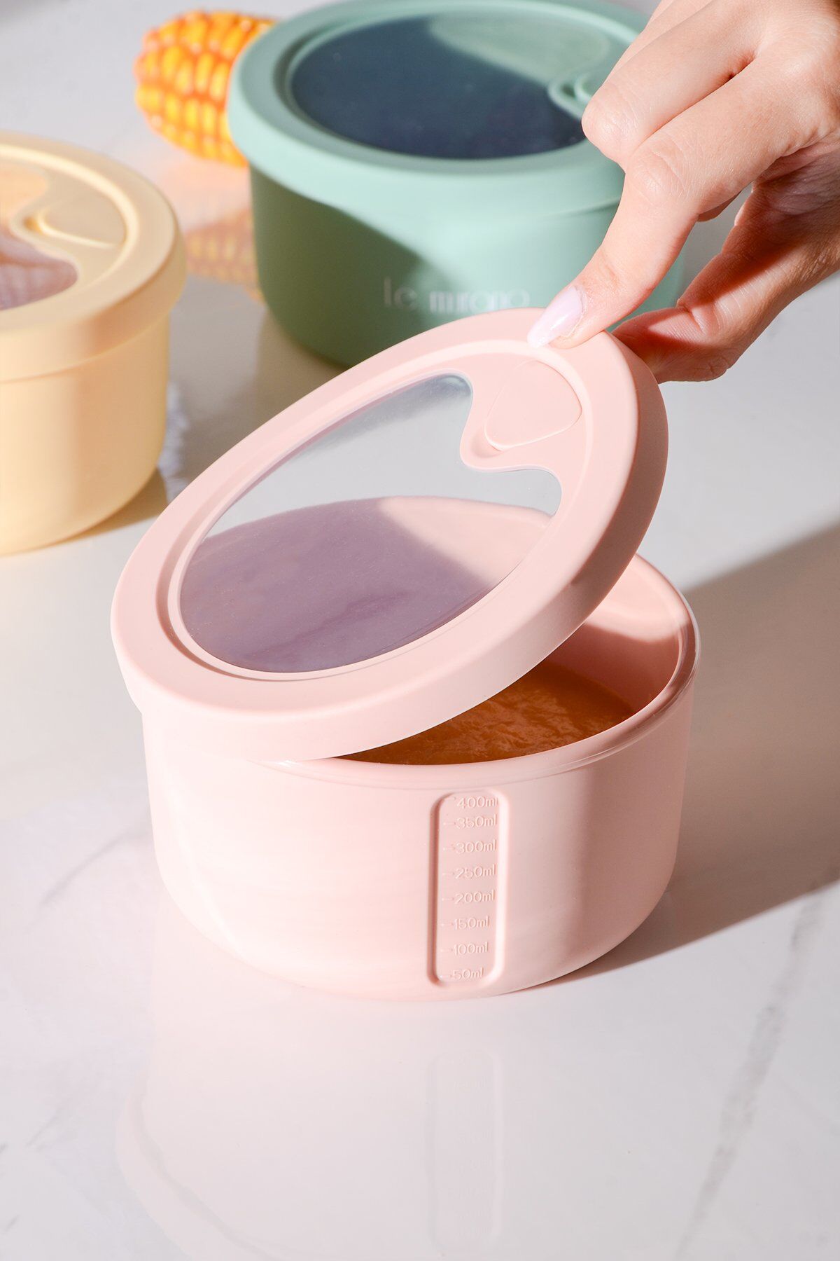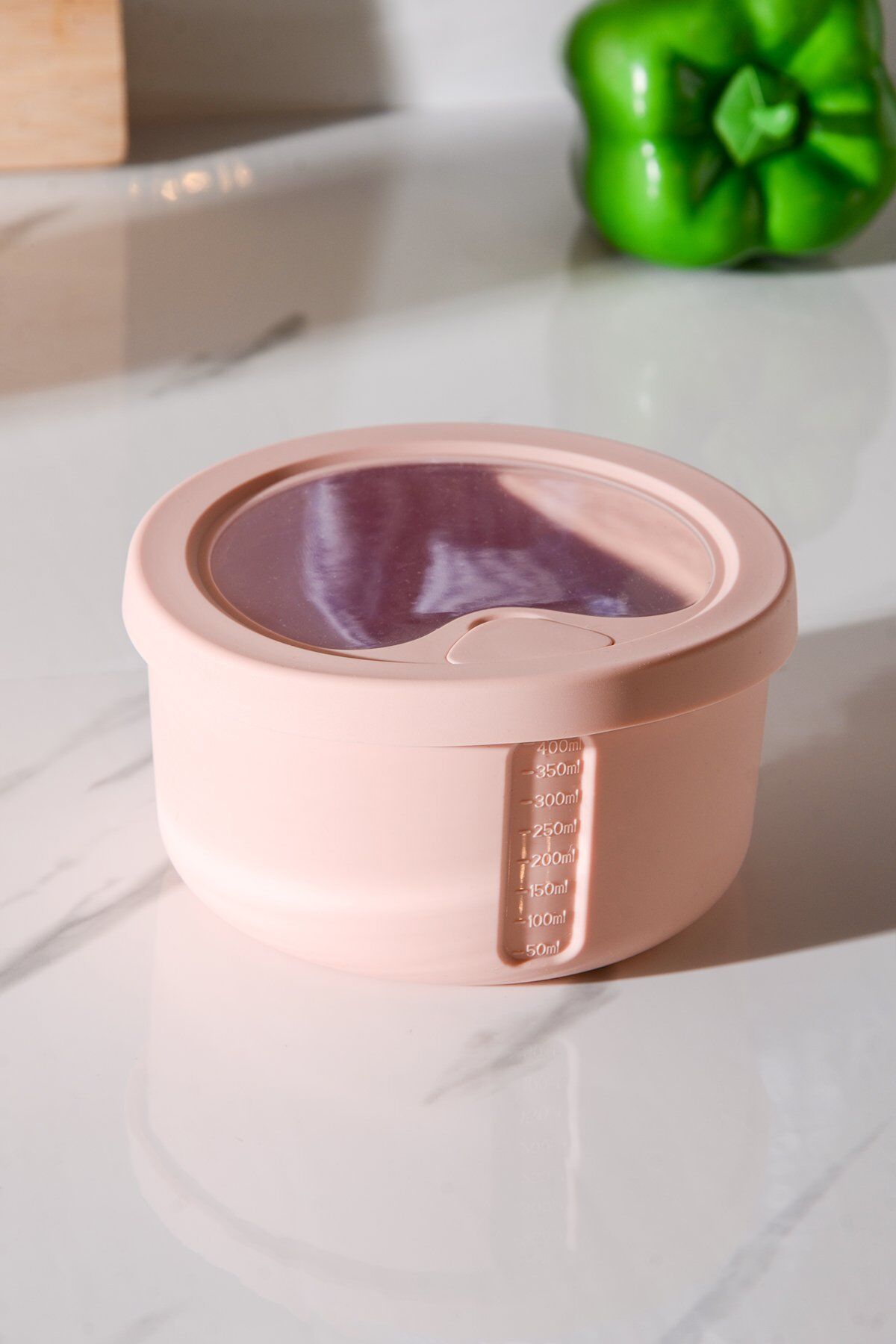 Pastel Yuvarlak Silikon Saklama ve Taşıma Kabı 400 ml: sızdırmaz kapaklı, tekrar kullanılabilir ve kokusuz silikon yapıda. Artan yemek, öğle yemeği, bebek maması ve soslar için ideal. Mikrodalga ve dondurucu uyumlu, bulaşık makinesinde yıkanabilir.