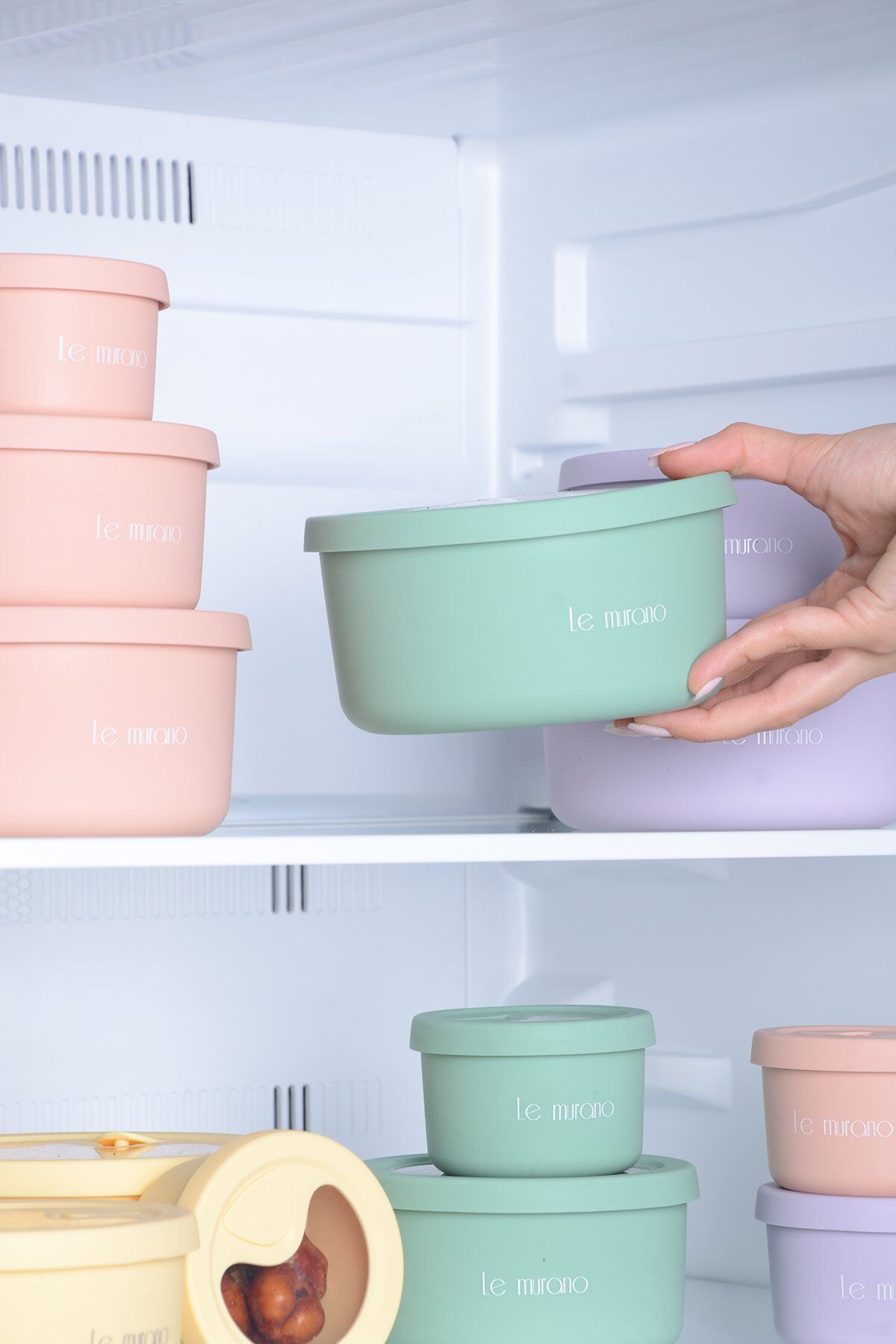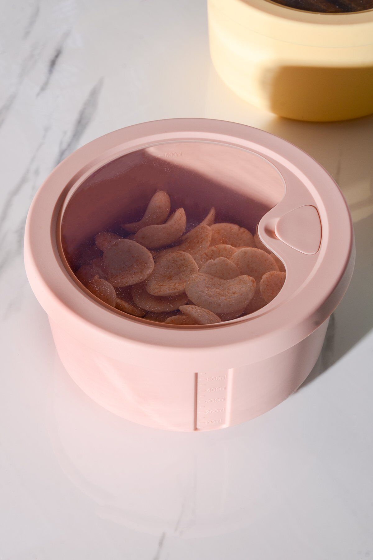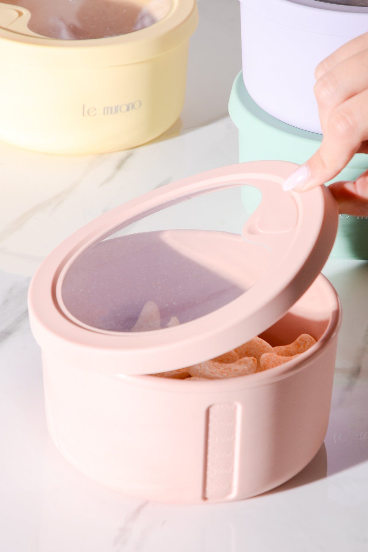 Pastel Yuvarlak Silikon Saklama ve Taşıma Kabı 400 ml: sızdırmaz kapaklı, tekrar kullanılabilir ve kokusuz silikon yapıda. Artan yemek, öğle yemeği, bebek maması ve soslar için ideal. Mikrodalga ve dondurucu uyumlu, bulaşık makinesinde yıkanabilir.