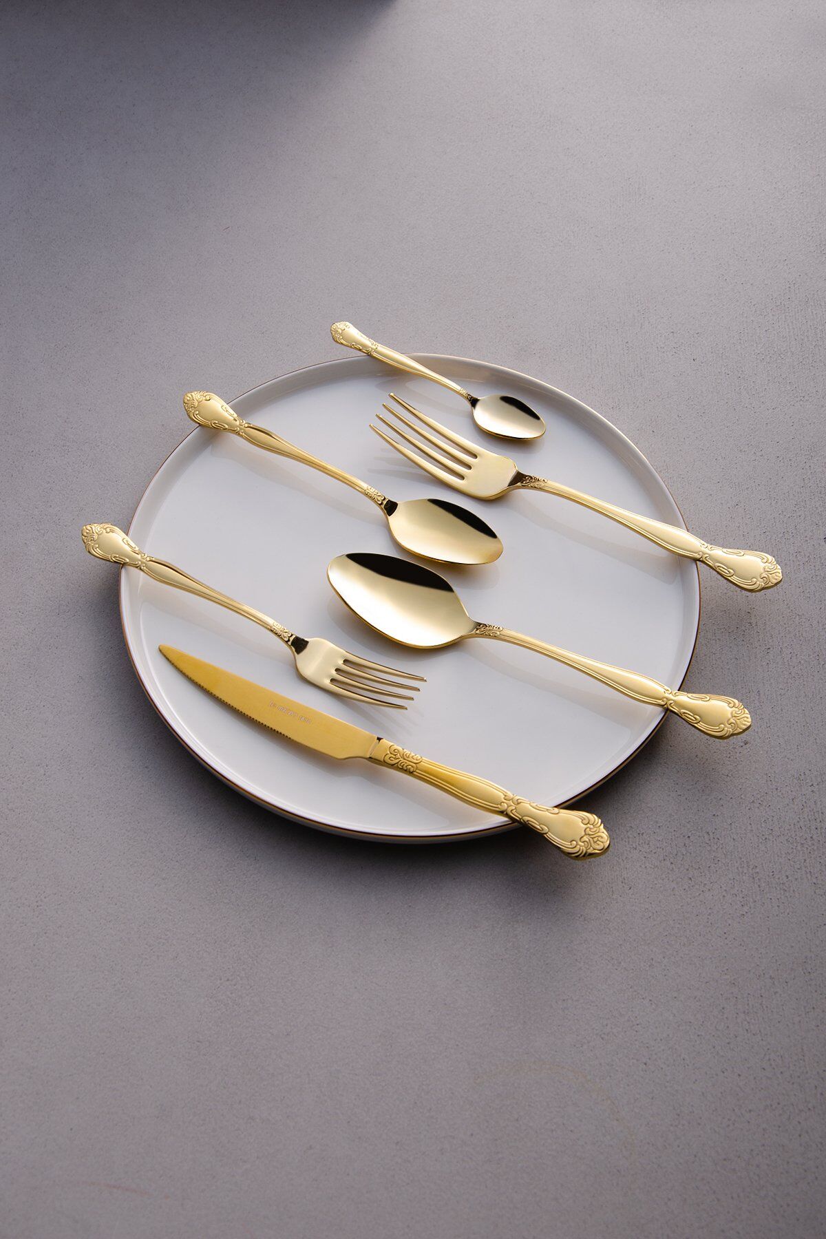 Klasik zarafeti modern sofralarla buluşturan Venezia Çatal Kaşık Bıçak Takımı Gold, ince işlenmiş sap detayları ve dengeli formuyla sofralarınıza asil bir dokunuş katar. Zamansız tasarımı sayesinde hem günlük kullanıma hem de özel davet sofralarına kusursuz uyum sağlar.
